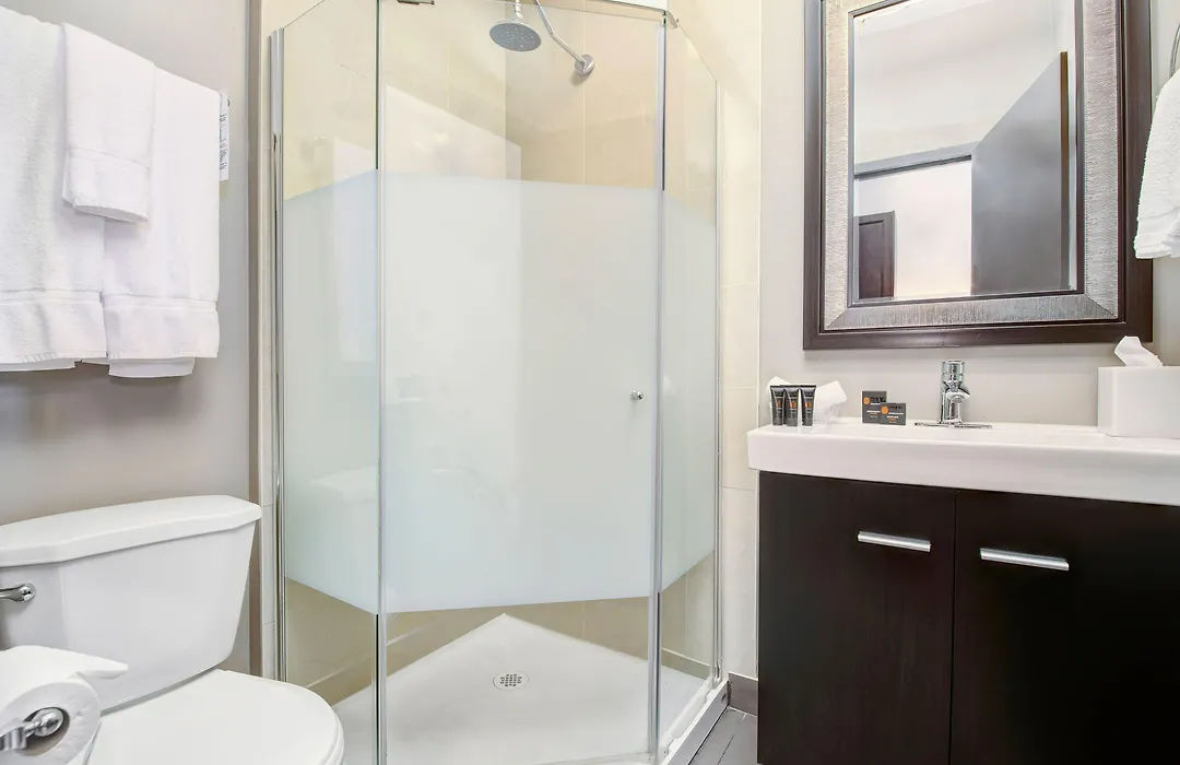 Ferro de passar, o ferro e tábua de passar, controle de temperatura, juntamente com máquinas de café/chá, proporcionam conveniência no sala do o The Willowdale Hotel Toronto North York. Casa de banho separada, banheira e chuveiro, juntamente com secador de cabelo e roupões, estão disponíveis.